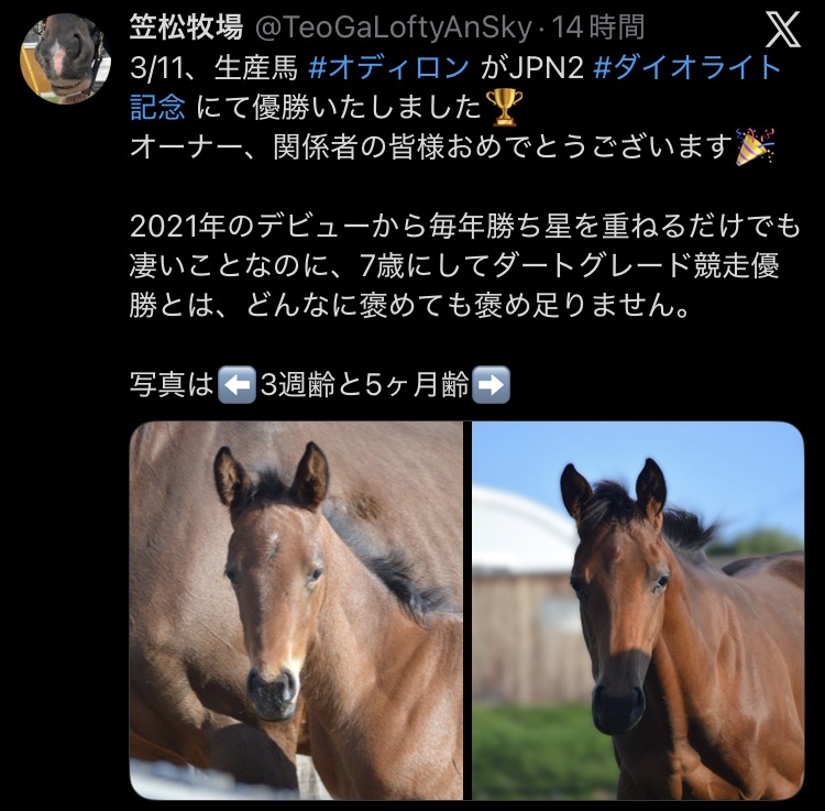 | … | 7026/03/13(金)12:57:38No.1410285390+>https://x.com/nakau_keiba/status/2032218107323040156?s=46 |