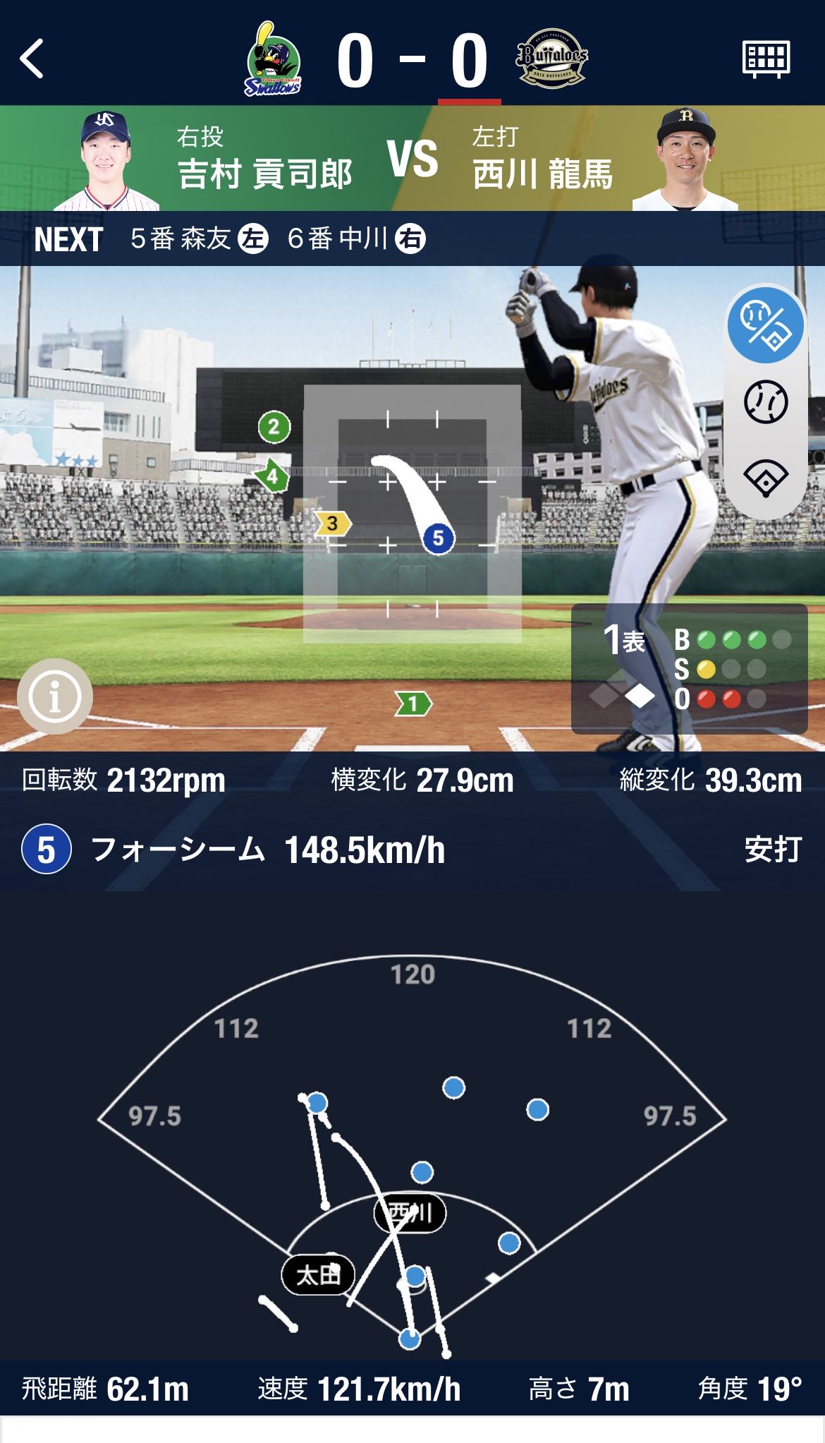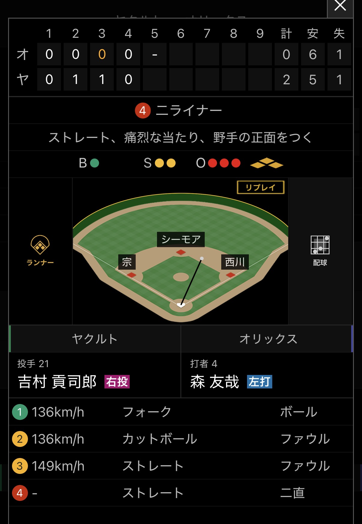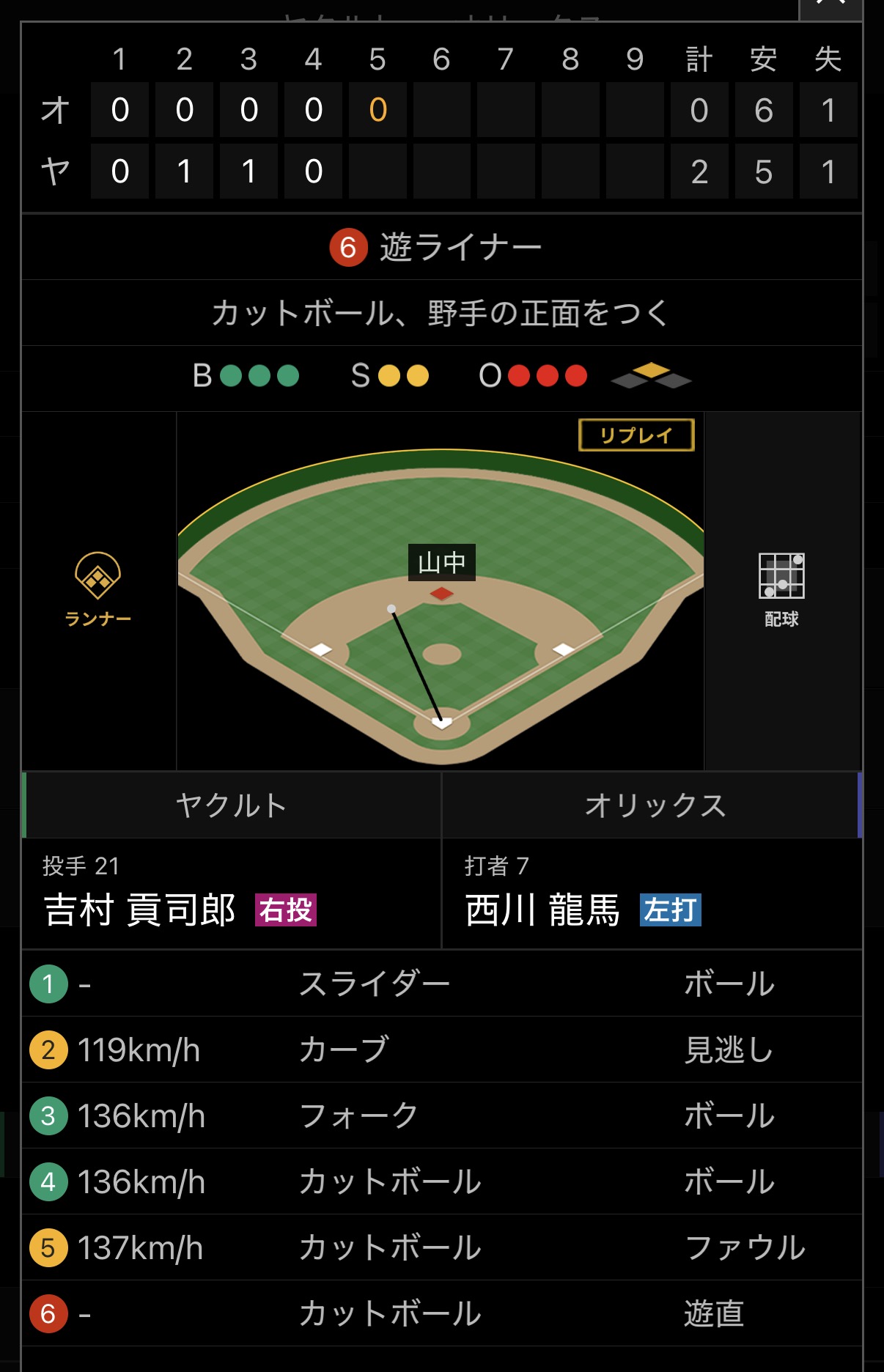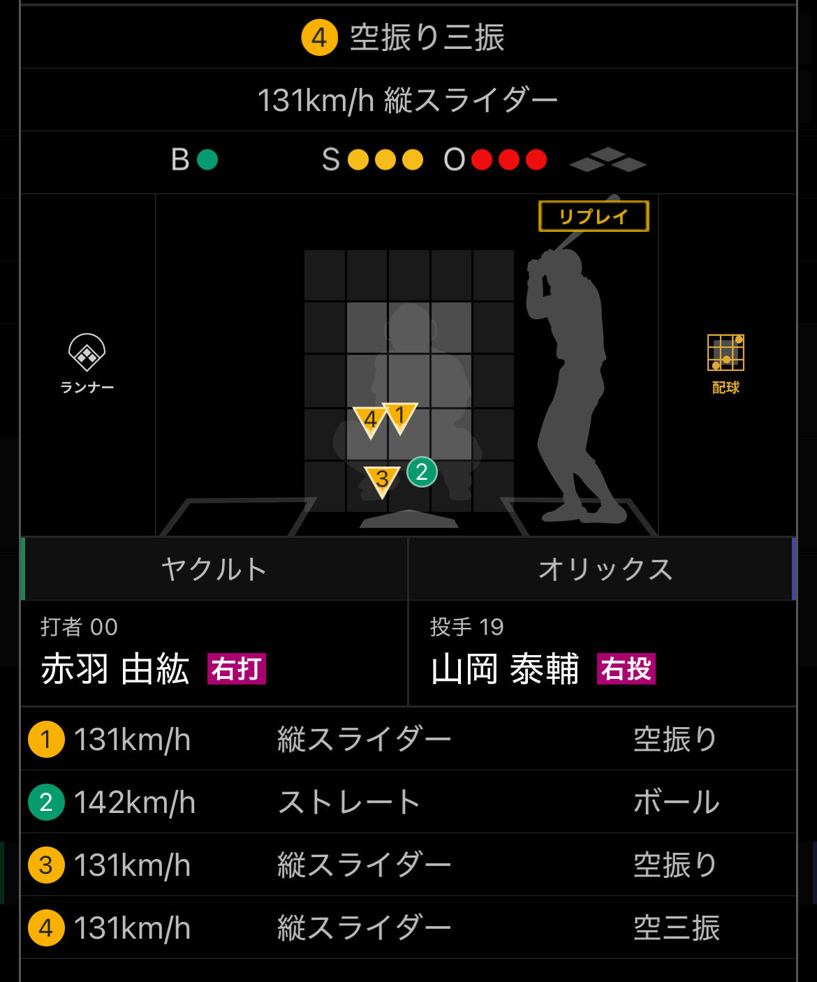 遊併殺打 カットボール、引っかけ ←これもヤクルトの主砲ホセ・オスナ |
