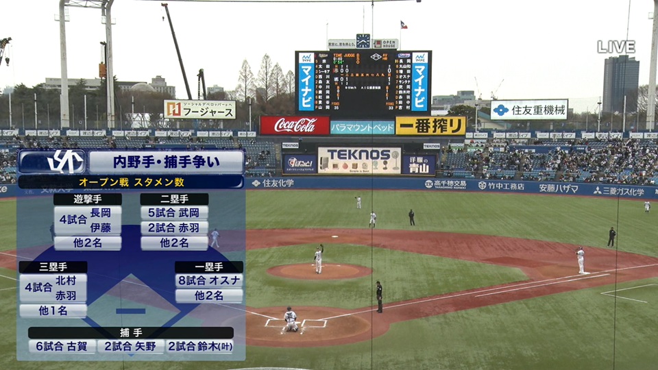 昨季は救援として36試合に登板して1勝1敗、11ホールド、防御率2.76だった左腕。この日はチーム今季初の神宮でのオープン戦、オリックス戦が15時から行われる。 |