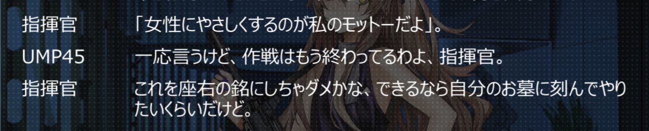 | … | 52526/03/13(金)17:27:05No.1410340047+>指揮官は自分のお墓に刻む言葉は決まってるよね |