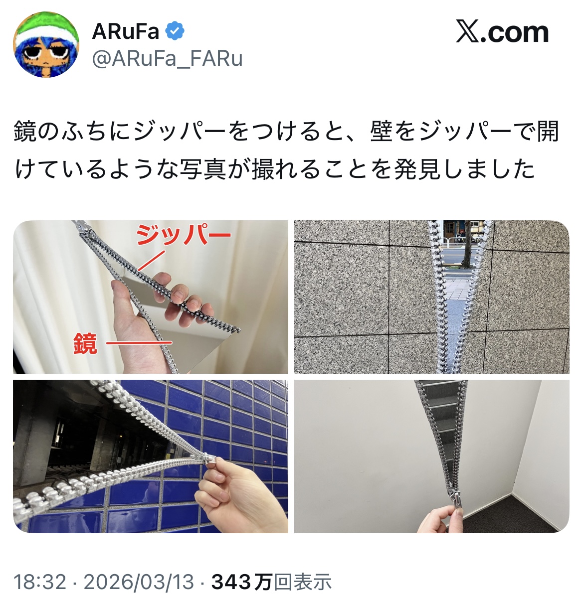 | … | 2526/03/13(金)20:56:37No.1410409826そうだねx14皆さんはブチャラティになって壁をジッパーで開きたいと思ったことはありませんか? |