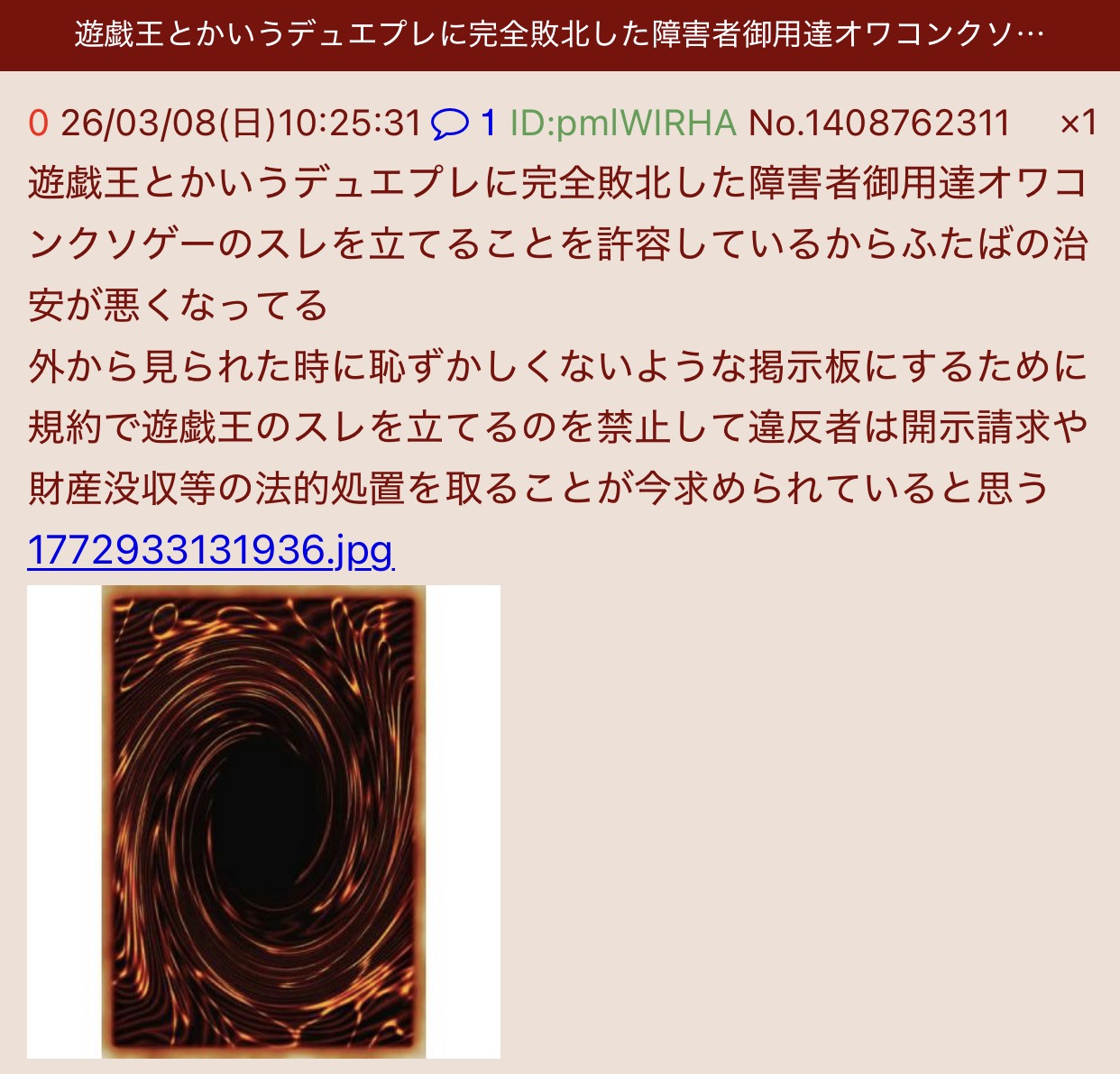 | … | 926/03/13(金)22:06:27No.1410436252そうだねx1相変わらず遊戯王カードって言ってるんだ… |
