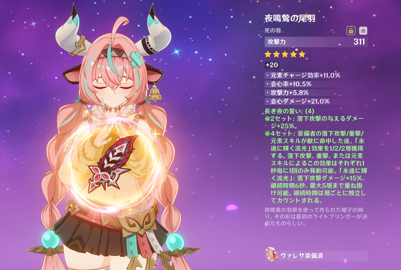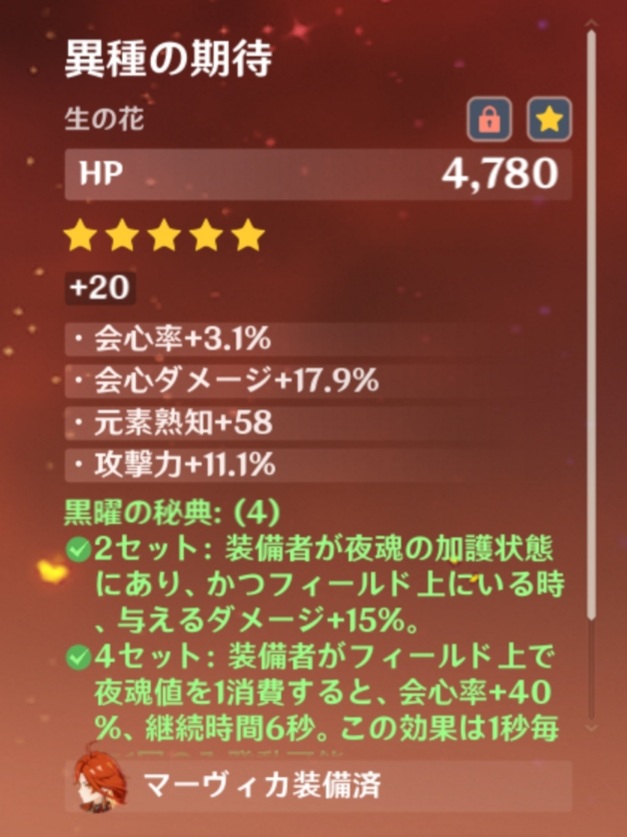 | … | 9026/03/13(金)23:28:45No.1410464844+>黒曜4セットの会心率+40%は最初誤字を疑ったのを覚えてるぜぇ 相方の絵巻も夜魂キャラが使うとダメバフ40%配れて控えからでも発動可能でチャージ補助まであるとか大概ヤバいぜぇ |