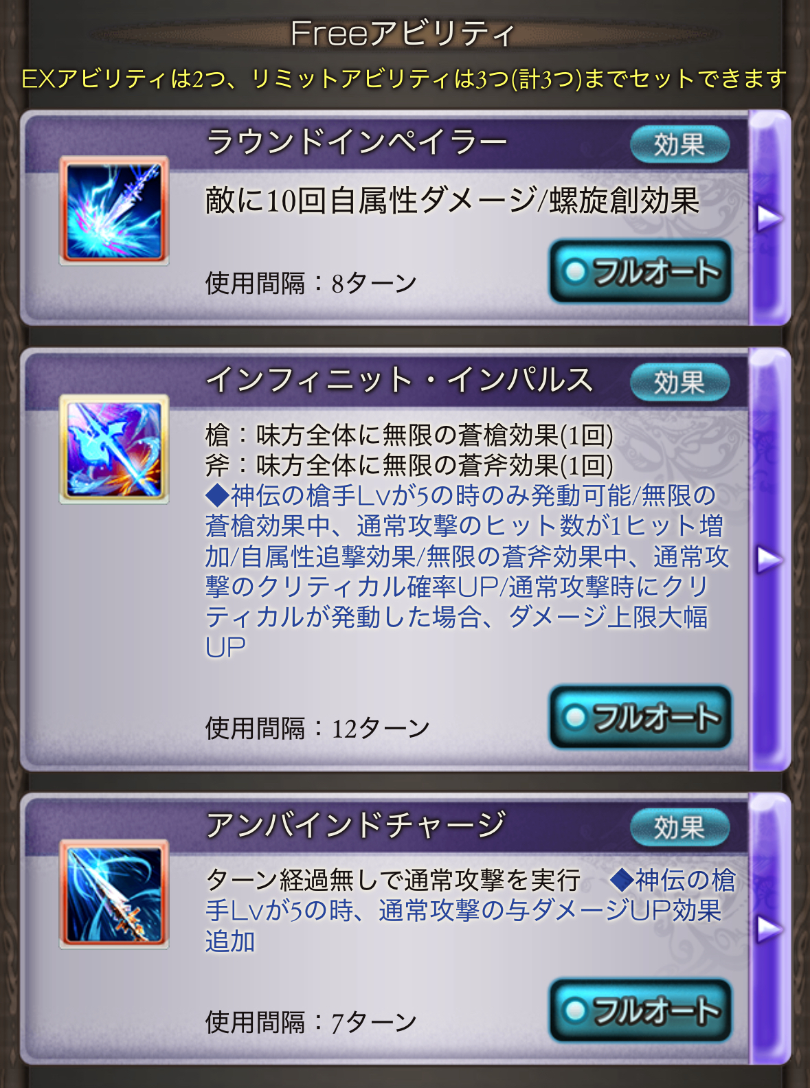 | … | 9626/03/14(土)00:49:36No.1410487834そうだねx1アプサラスのリミアビに槍斧両方の効果を得られるようになるバフがありましてえ… |