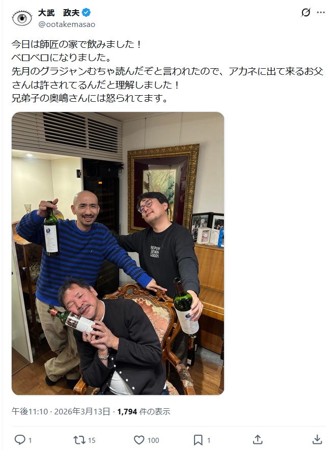 | … | 5626/03/14(土)01:50:44No.1410497970+>漫画家ってこんなに師弟関係アピールするもんなんスか? |