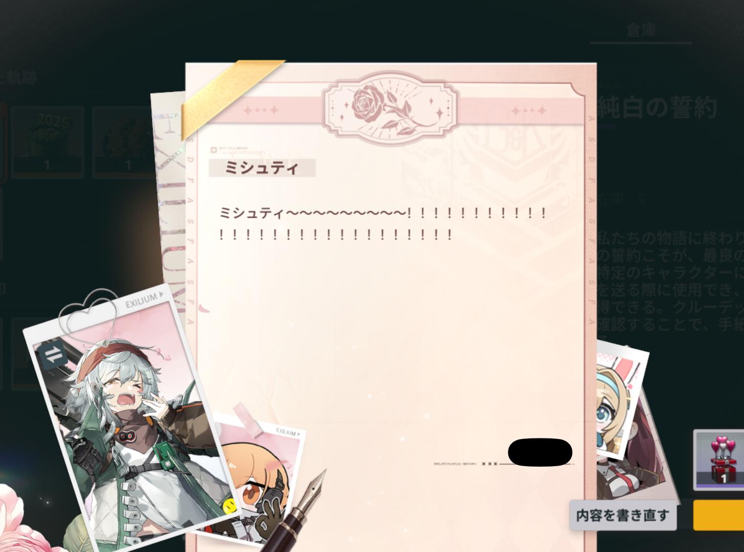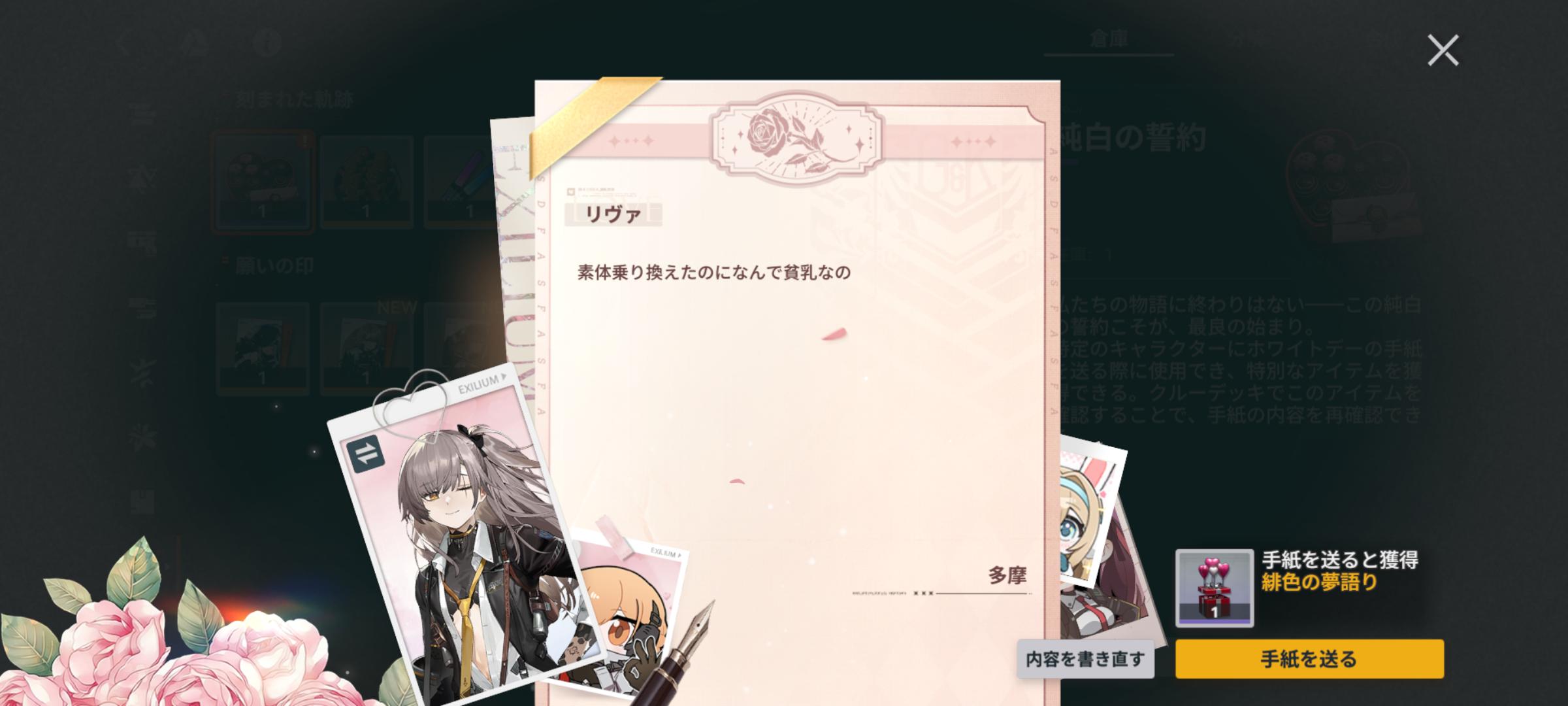 | … | 5626/03/14(土)07:51:32No.1410517909+>よくわからんけどゲームのキャラクターに手紙を送らせるのは大陸の文化なんだろうか |