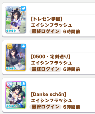 | … | 46726/03/14(土)12:19:18No.1410568516+>今回青で欲しいのってスピの次点はなにになるんだす? >スタミナあたりだすか? 根性が凹むから根性らしいですけどぶっちゃけなんでもいいらしいです |