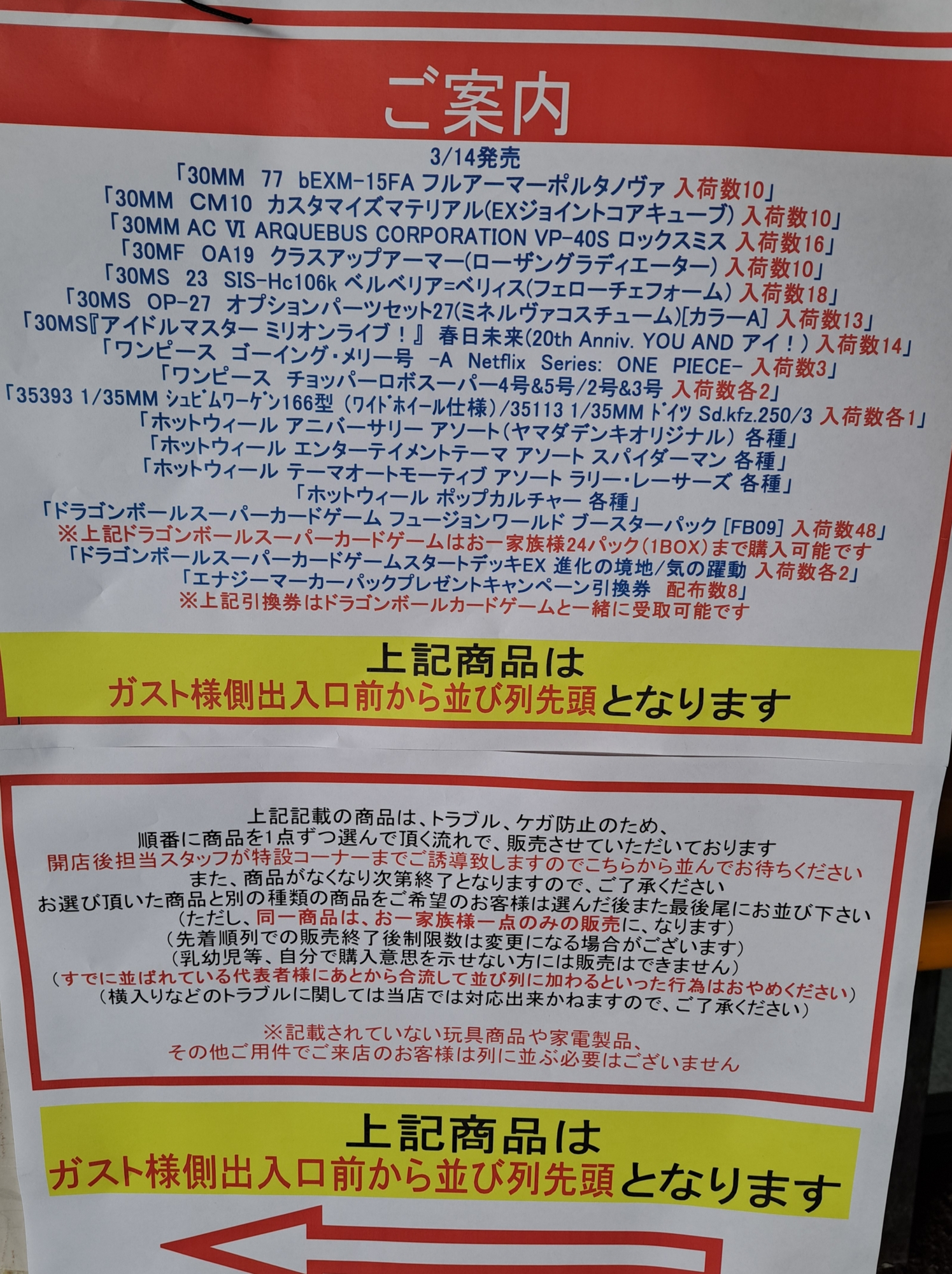 | … | 3526/03/14(土)10:47:22No.1410547110+前に5人並んで入荷5個だったからこりゃダメだなと思ったんだが1人はガンダムもう1人はカードだったおかげで買えた |