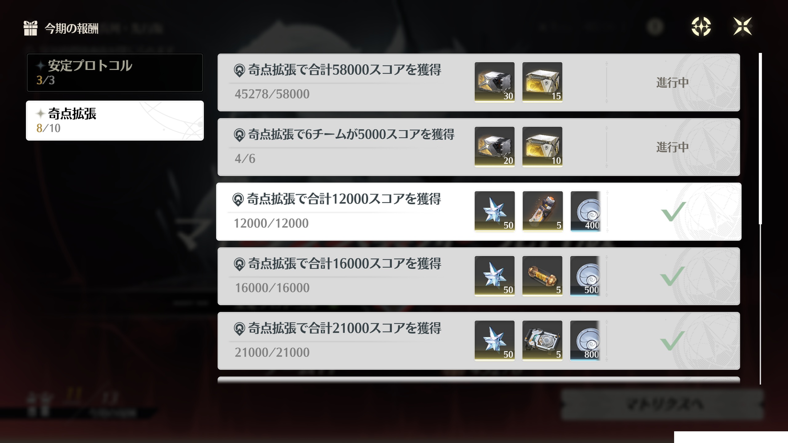 | … | 3126/03/14(土)10:20:19 ID:7cxYKkU6No.1410542260そうだねx2>昨日のパーティ編成アドバイスのおかげでなんとかマトリクスの奇点拡張R2全員倒せたチン!ありがとヤン! |