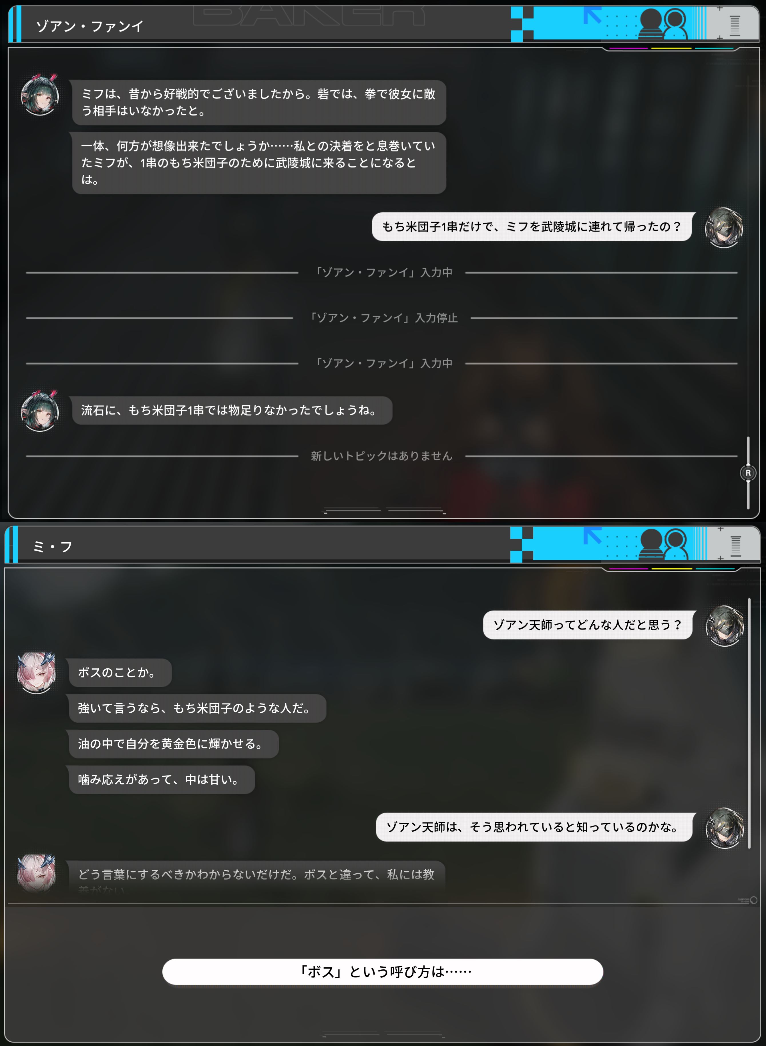 | … | 7026/03/14(土)14:27:39 ID:RIENqfaUNo.1410603887+細かい話はある程度追わないといけないとはいえ兄貴の私室で読まされる武陵の報告書で「武陵による裂け目の抑制失敗→砦が生き延びるために物資襲撃→その時に天師の雷法で親父死亡→関係断絶」についてはまとめてるし全く分からないってのは読み飛ばしてないか?ってのは思う |