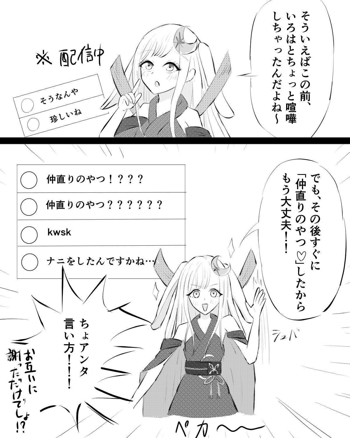 | … | 6926/03/14(土)16:10:14No.1410631850+基本クソガキなのに彩葉が倒れた時のフォローはびっくりするほど完璧なのがかぐや |
