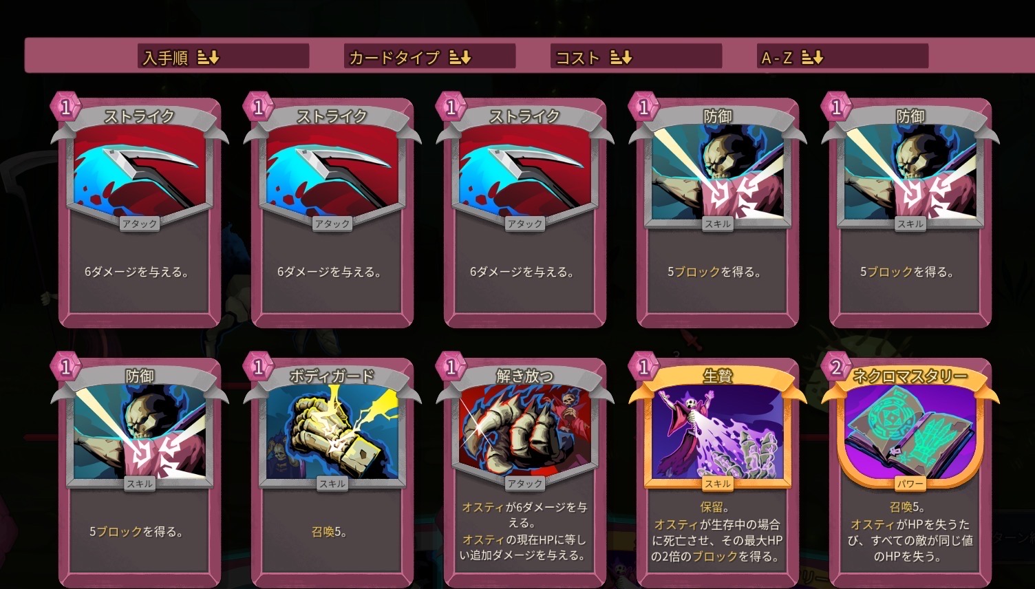 | … | 3226/03/14(土)17:13:01No.1410647672+>ネクロバインダー全然クリアでけへん!! >アタックカードばっかり来てブロック足りなくなって死ぬ 反抗なり墓守なり優秀なブロックは多いから多めに取ろう 負の波動は数値は並なだけど全体破滅付与がめちゃくちゃえらい |