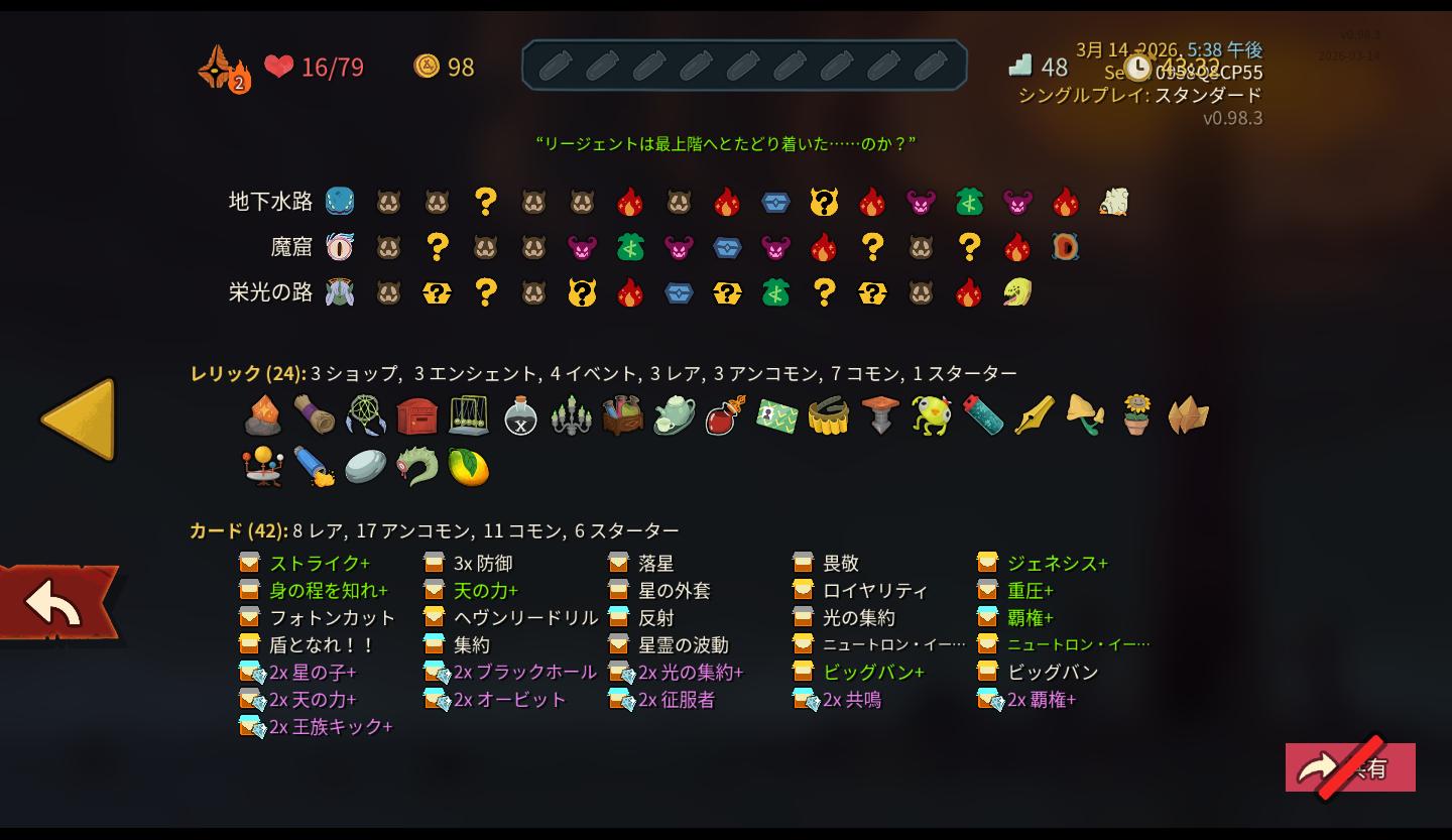 | … | 926/03/14(土)17:06:34No.1410645907+一層で特定カードの再利用出来るだけで被ダメが数点減るよね デッキがぶんまわるようになってきたらランダムが足を引っ張るけど |
