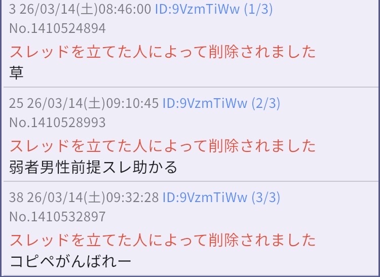 1人で喋って他人は削除で拒否するならなんで人目につく所に出てくるんだ