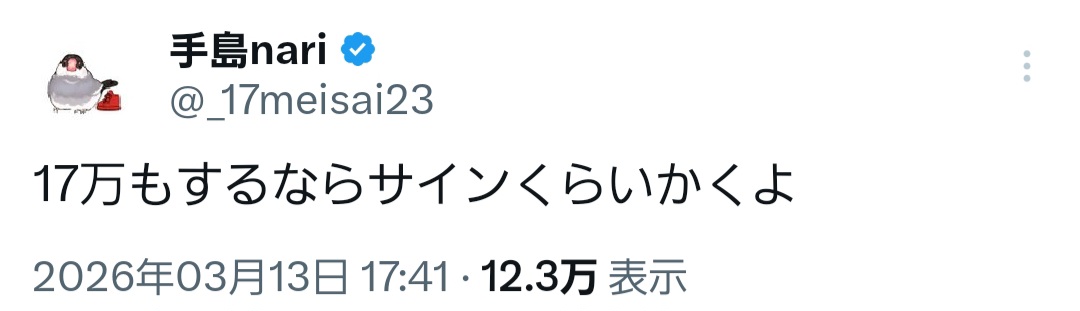 | … | 8026/03/14(土)20:58:21No.1410725337+17万の買うんですよね? |