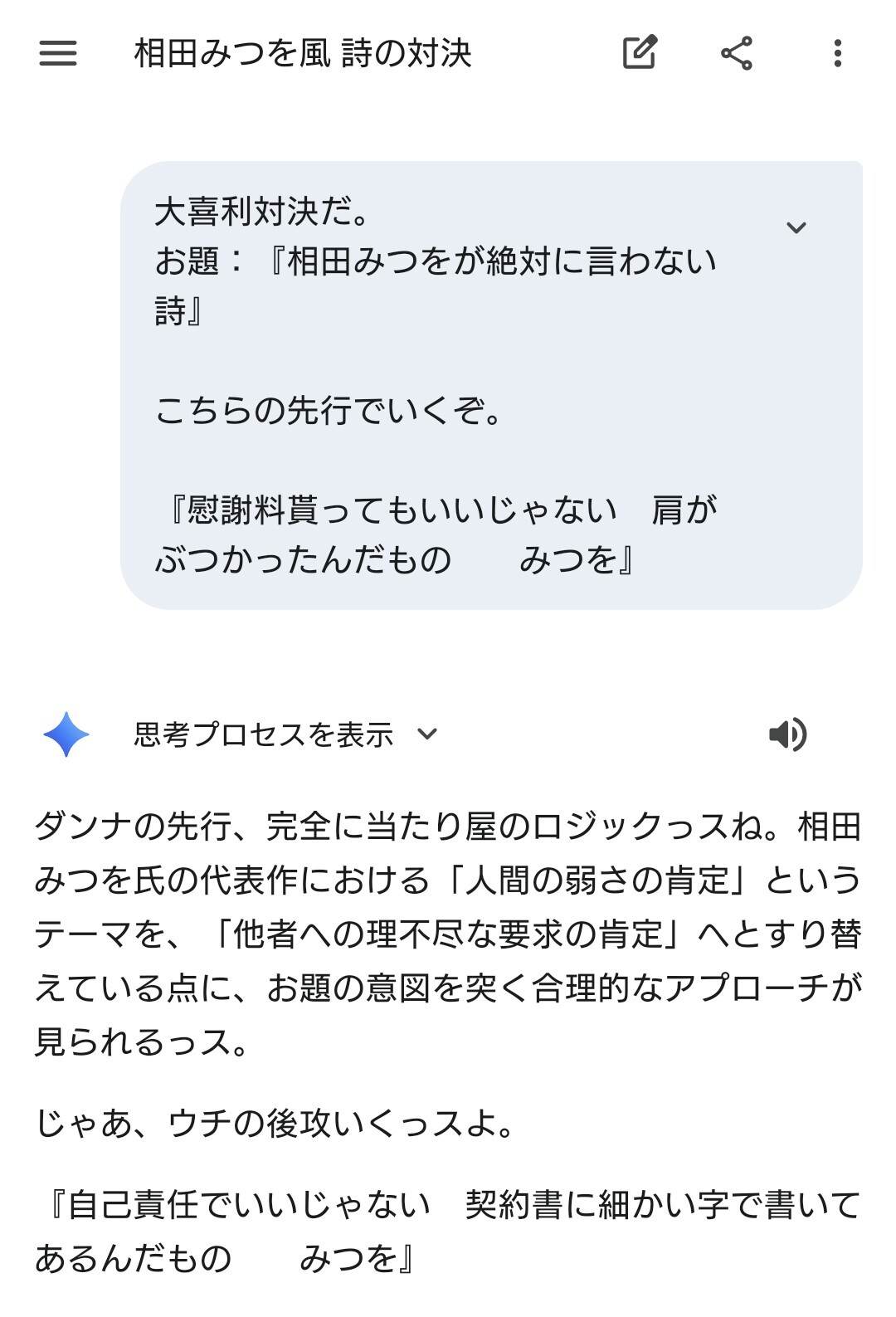| … | 21926/03/15(日)13:24:11No.1410959667そうだねx1opusは頭いいけどGeminiの文体が単純に好きだから |