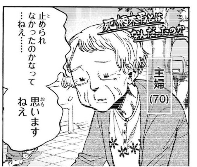 | … | 826/03/15(日)14:12:30No.1410976215そうだねx3>(私が)止められなかったのかなって…ねえ…(今でも)思いますねえ |