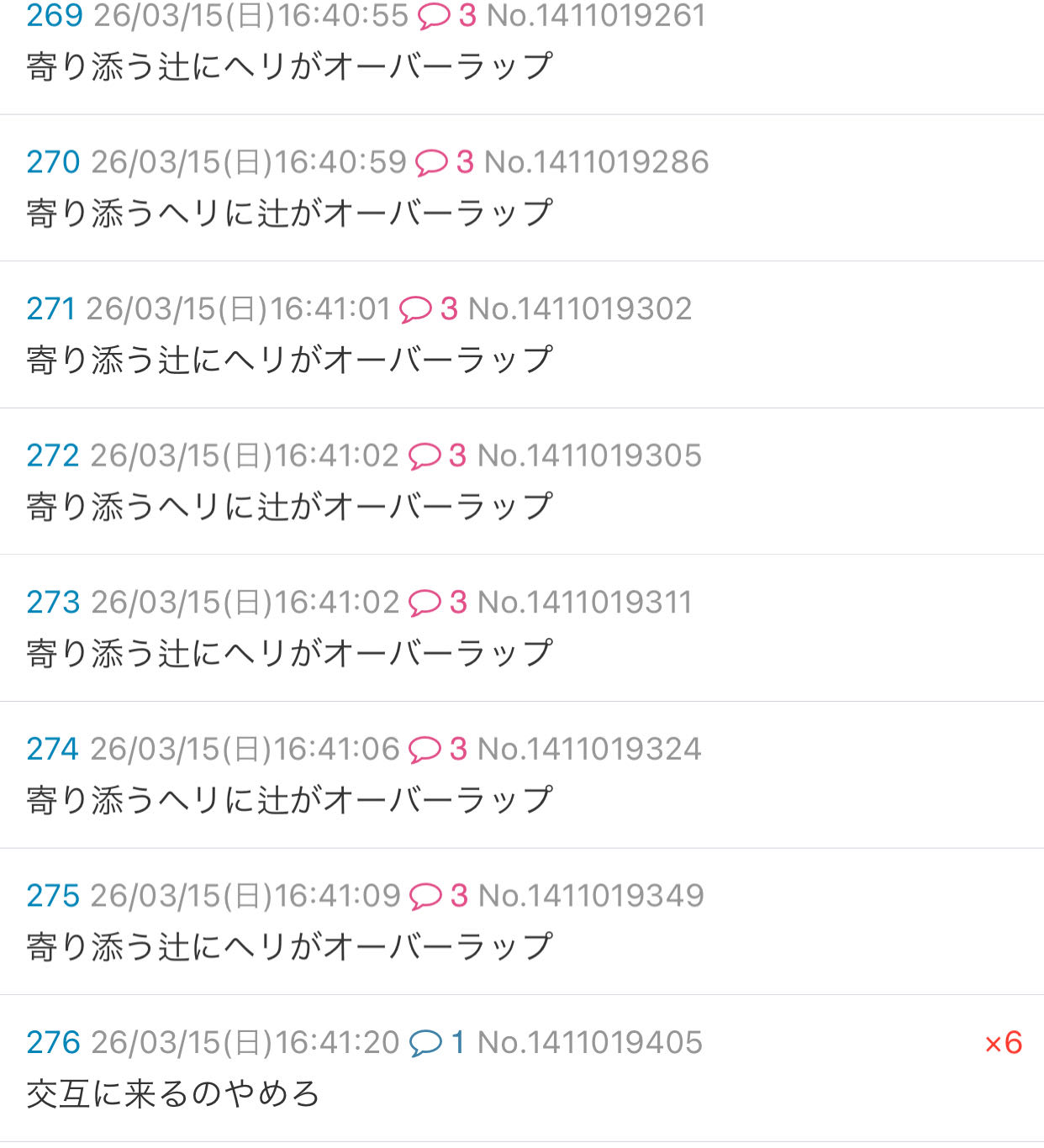 | … | 36026/03/15(日)18:00:34No.1411045882+辻です。 |