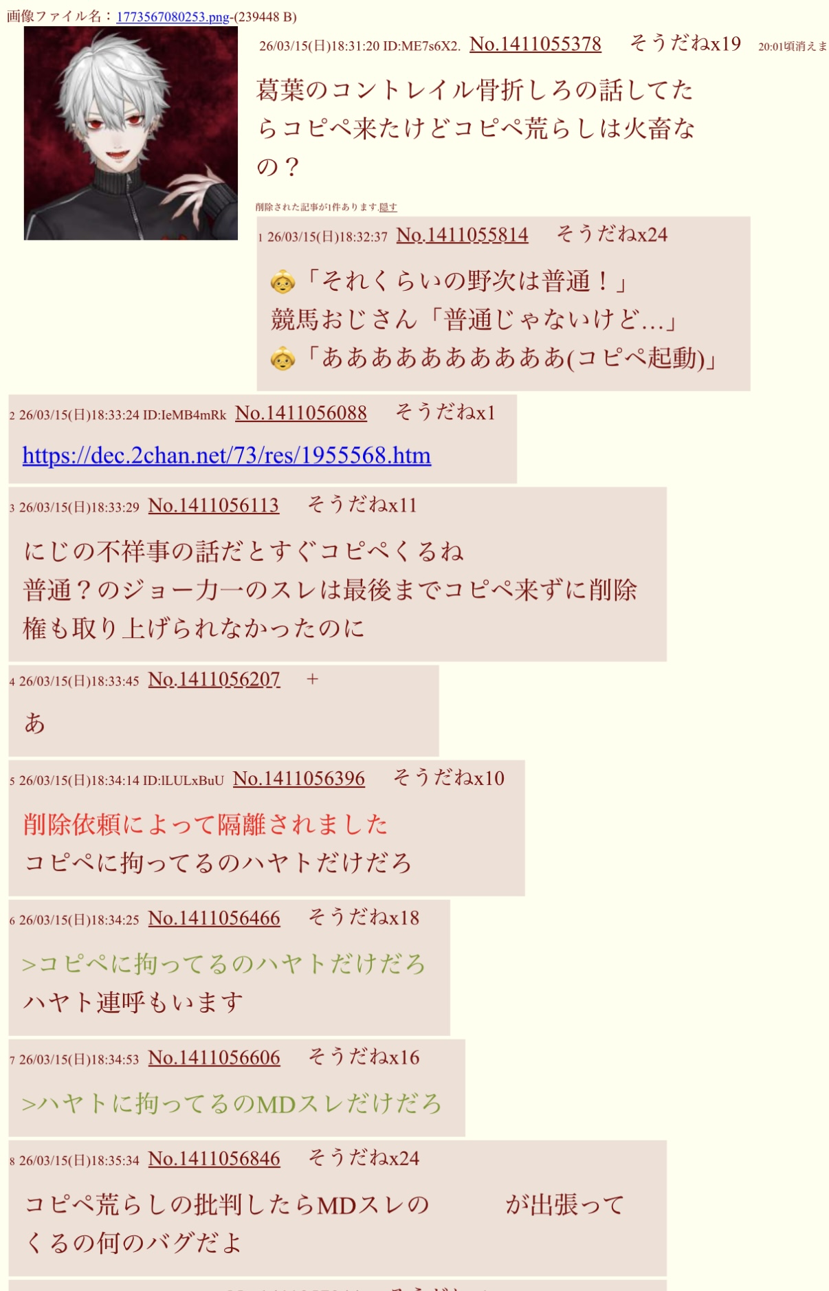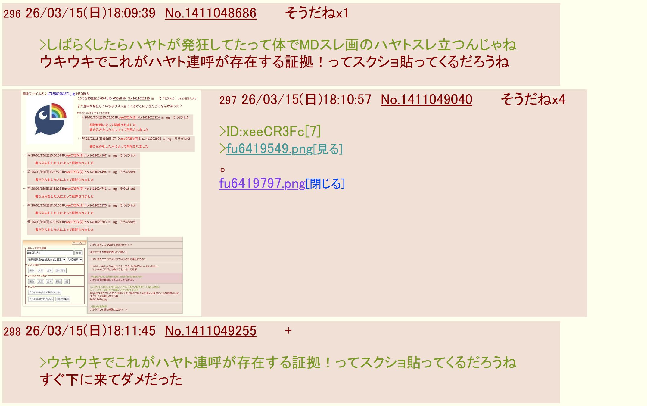 | … | 2026/03/15(日)19:45:43No.1411082518そうだねx6どんだけハヤト呼ばわりされたくないんだよ |