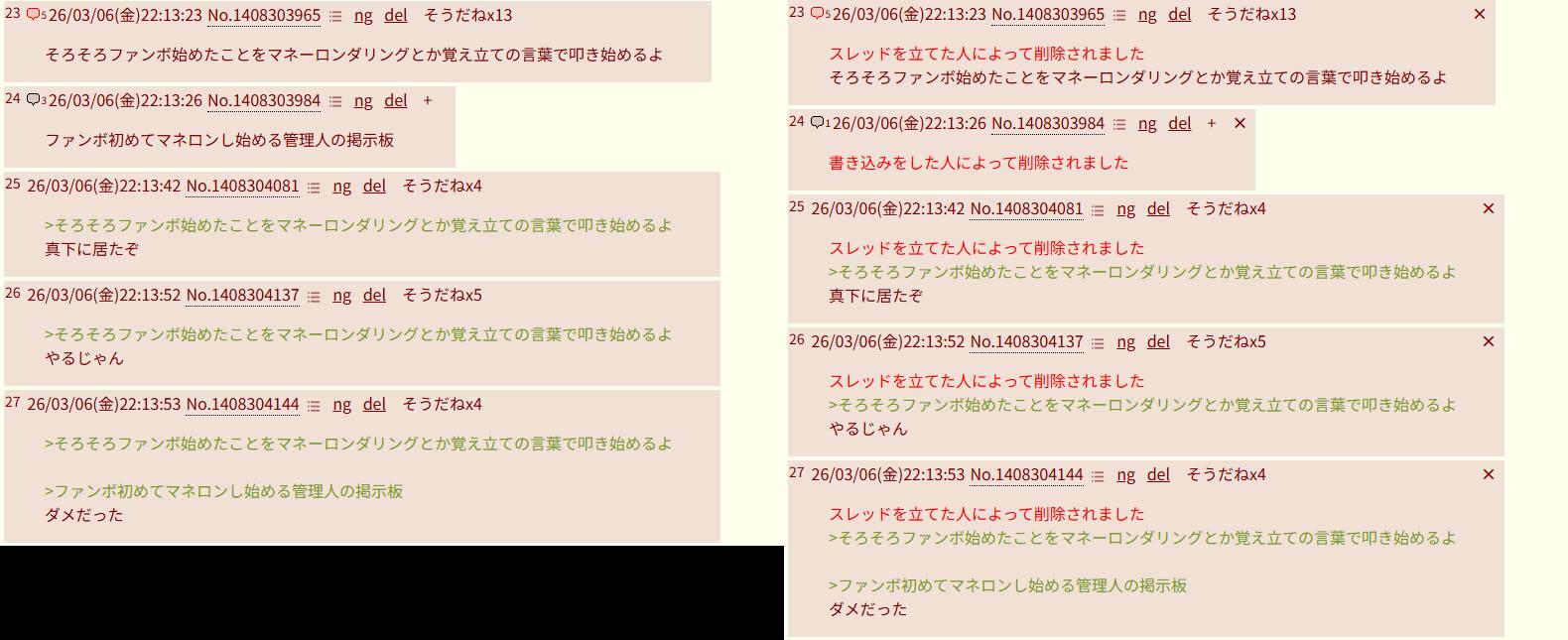 | … | 6526/03/15(日)19:43:08No.1411081497そうだねx3>とりあえずスレ「」にdelいれとけばいい? |