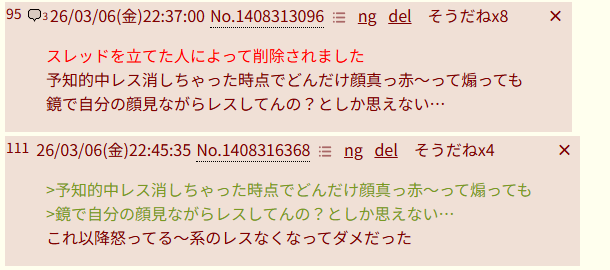 | … | 9426/03/15(日)19:51:03No.1411084640そうだねx4粘着対象まで言い始めた |