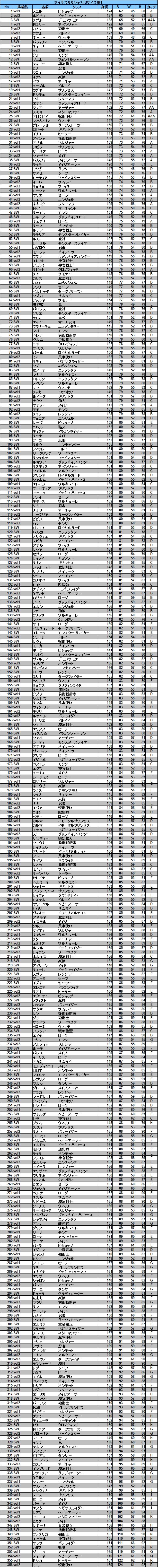 | … | 1826/03/15(日)20:17:57No.1411096272そうだねx2>そもそもなんかどんどん乳とか尻とか増量してるのもいるから人物というかユニットごと設定になるし |