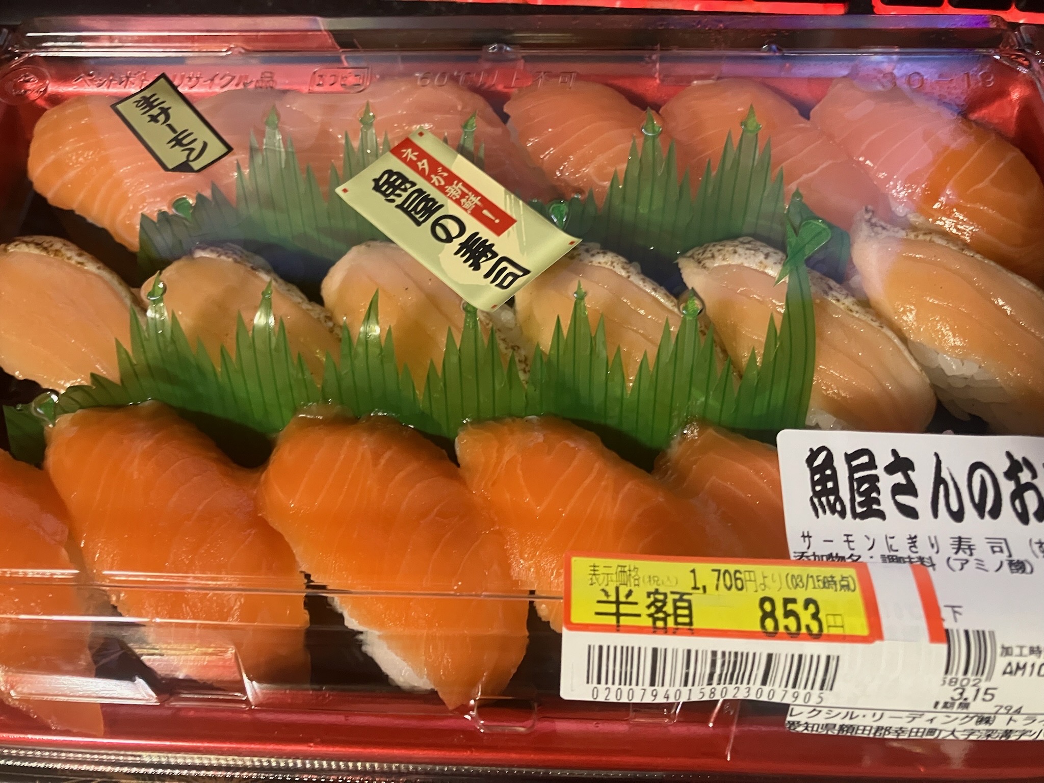 | … | 526/03/15(日)20:45:59No.1411109018+>半額の寿司とか生臭さが半端なさそう |
