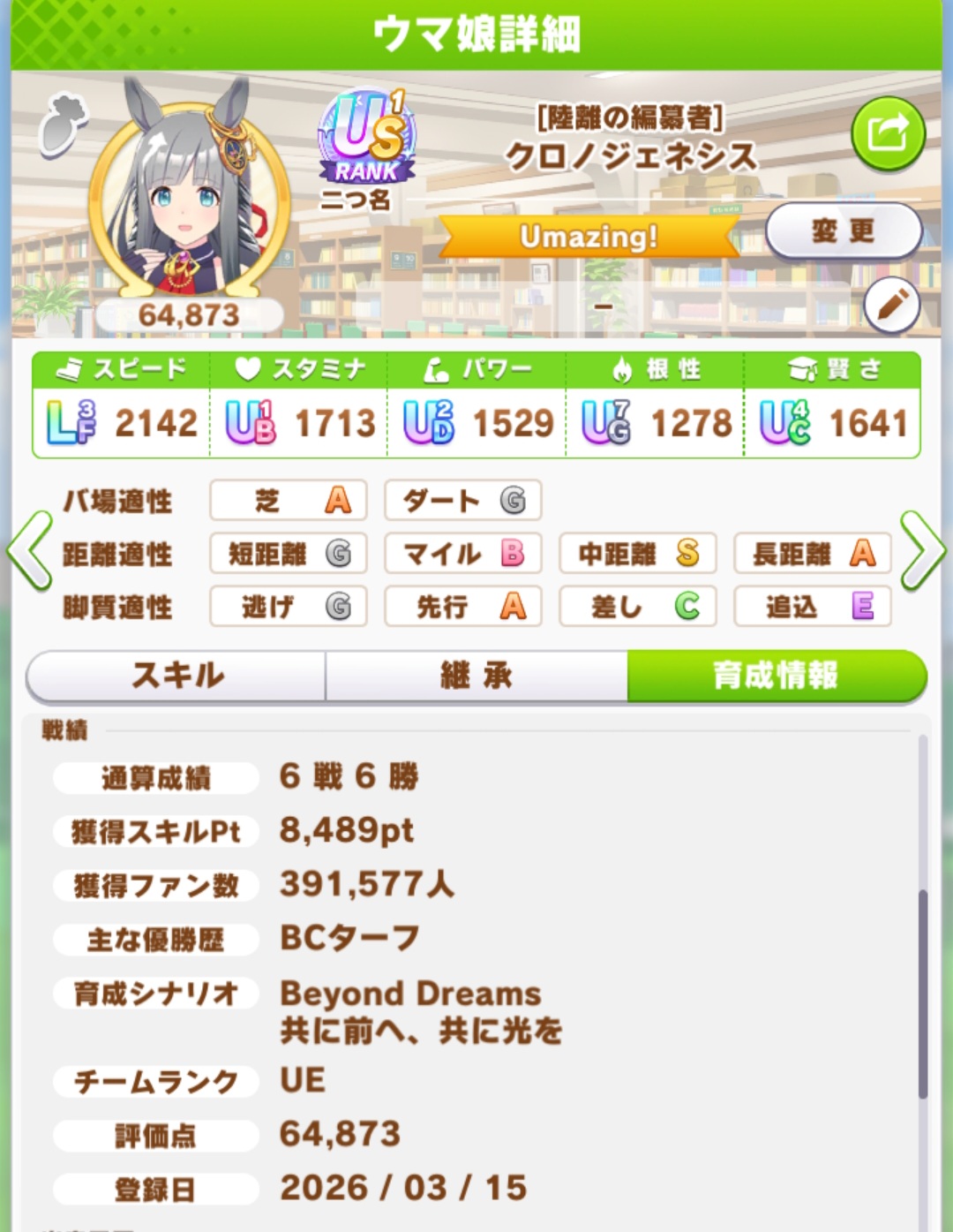 | … | 2626/03/15(日)23:18:20No.1411162781+>やっぱ紫+複数友情トレ踏めてないから伸び悩んでるのだな… |