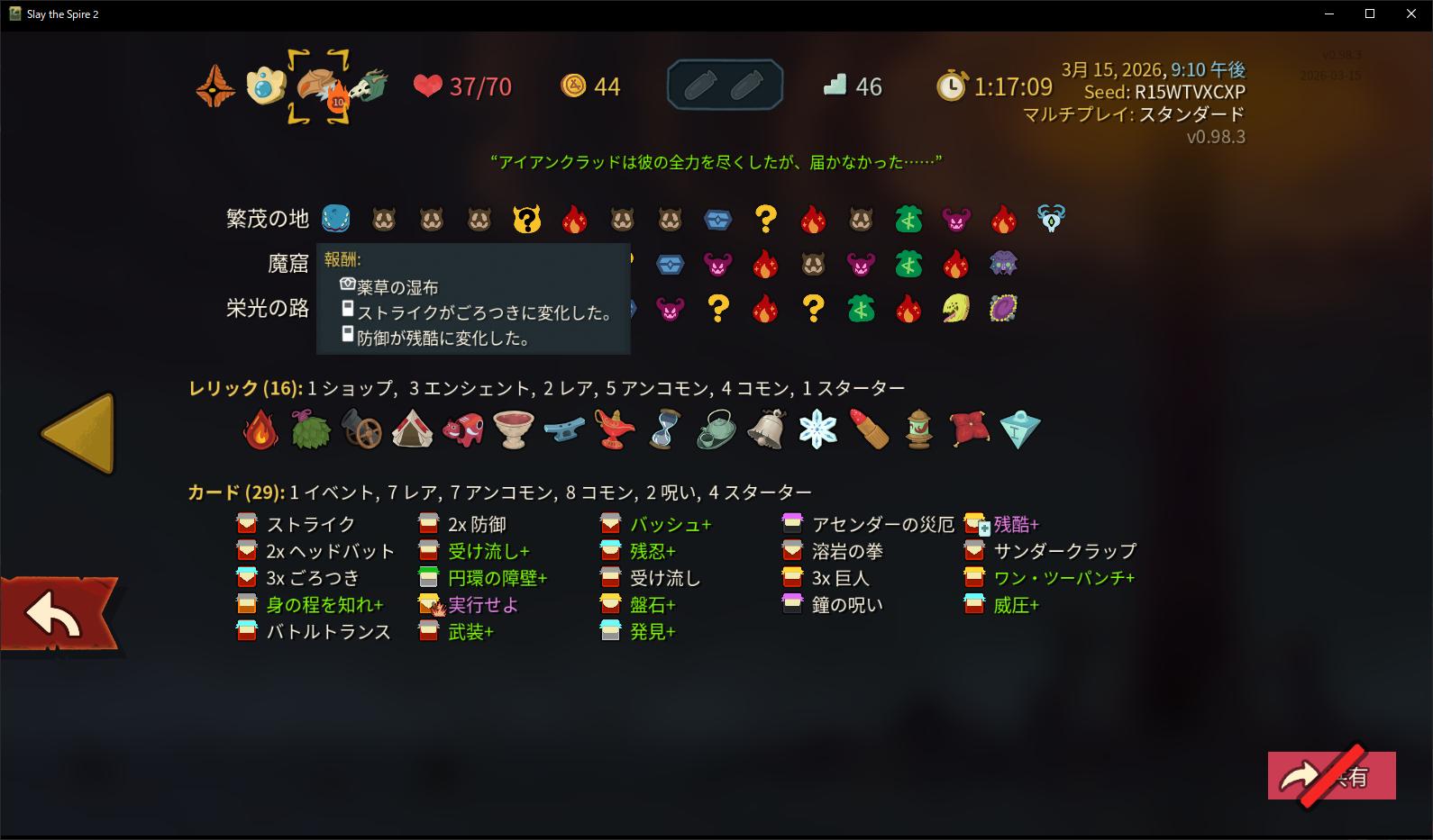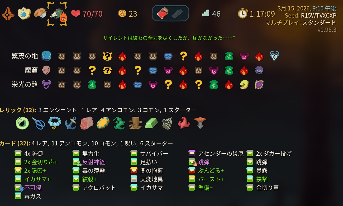 | … | 23626/03/15(日)23:48:28No.1411172790+1層サイレントは防御札一切取らないでもいいくらい |