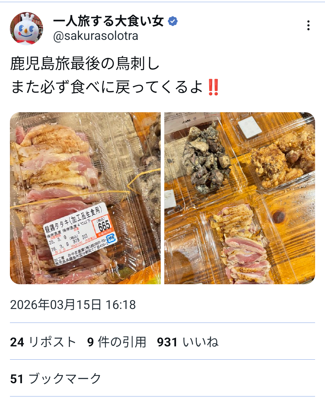 | … | 3026/03/16(月)01:07:09No.1411194158そうだねx18>ちなみに鹿児島と宮崎は独自のガイドラインを設けて生食を許可している |