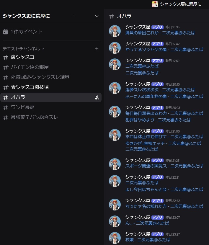 >あーシャンクスレしか楽しいことがねェ