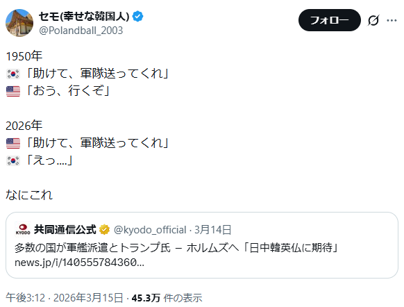 | … | 1126/03/16(月)09:45:37No.1411234815+アメリカ領で戦ってるならともかく |