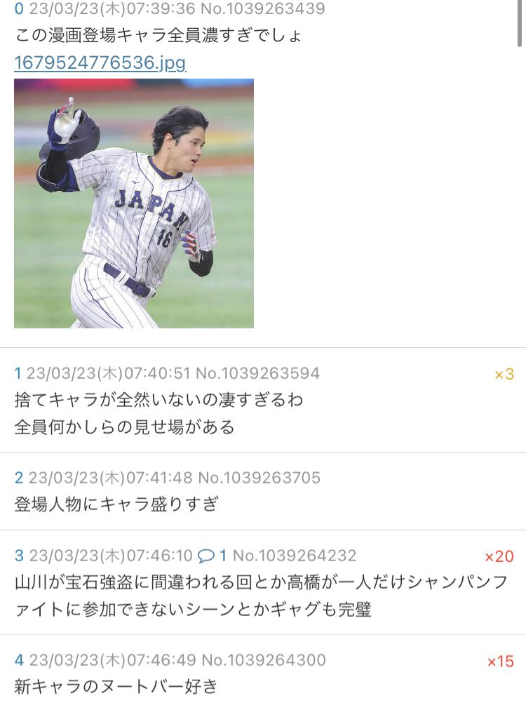 | … | 3926/03/16(月)11:11:58No.1411248912+【悲報】シャンクスレ、WBC日本敗北で1000完走した反動で壊滅… |