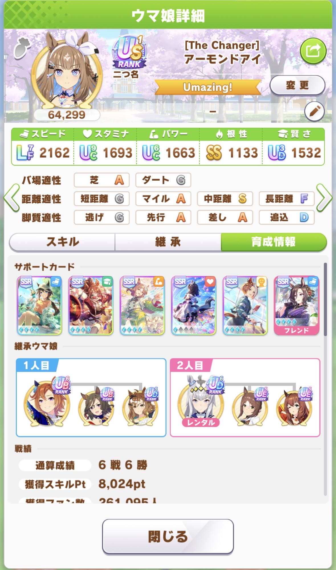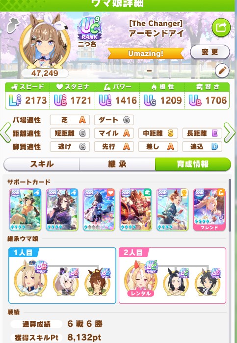 | … | 7726/03/16(月)12:45:55No.1411273406+長年使い回してきた賢さ1200程度のデバフ役を1800にして中盤白スキルも持たせたら体感いい感じなったのだ |