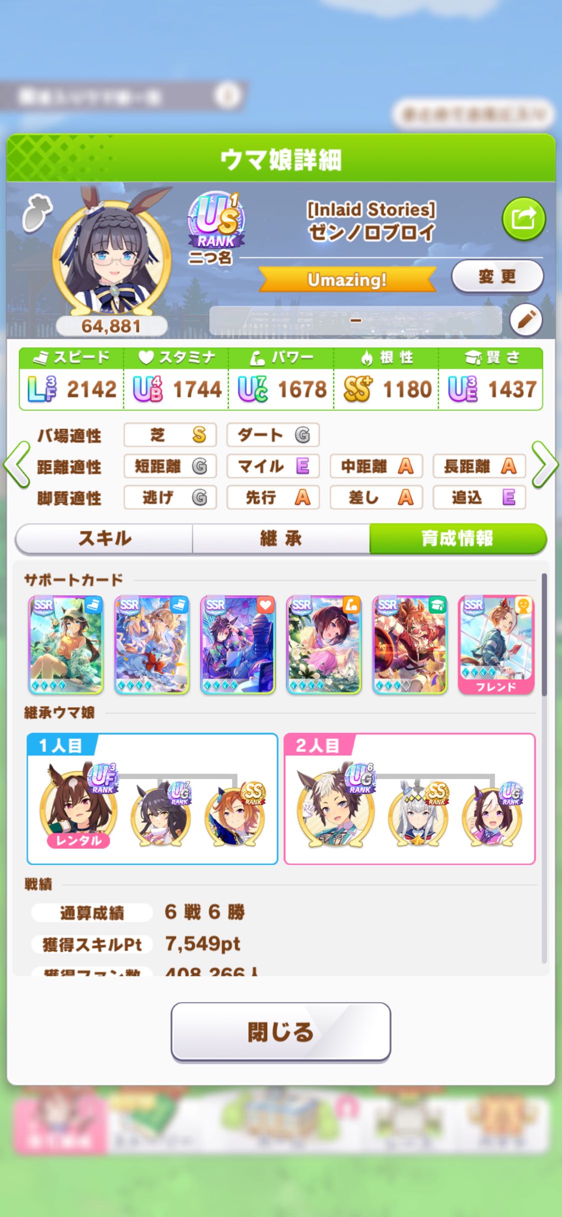 | … | 1026/03/16(月)16:54:33No.1411323938+短距離マイル用のサポカと因子弱いから全然盛れない |