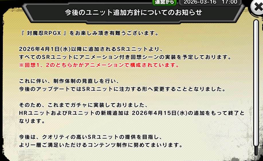 | … | 34026/03/16(月)19:02:38No.1411362295そうだねx3そもそもユニット廃止は運営的には建前上ポジティブな意味でやってるのに笑うなとか運営を後ろから撃つんですかよ… |
