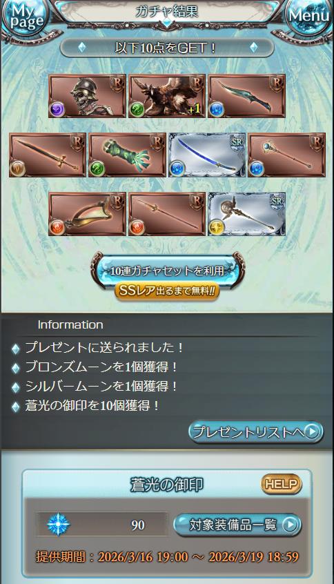 | … | 1526/03/16(月)18:45:06No.1411356008+>>10連だけ… >>金月出るまで… >>リミ出るまでだから… >ルーレットあるから19日までダメ 青空が出るまで… |
