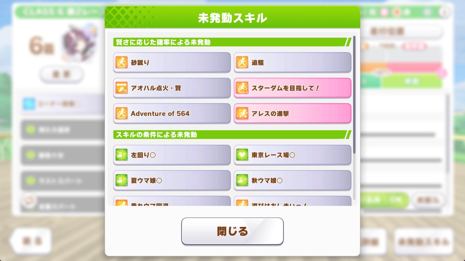 | … | 18726/03/16(月)21:40:50No.1411426392+>逃げは斜行2点としゃかりき欲しいのに逃げの基本スキルまで因子化と継承なんて無理無理なのだ |