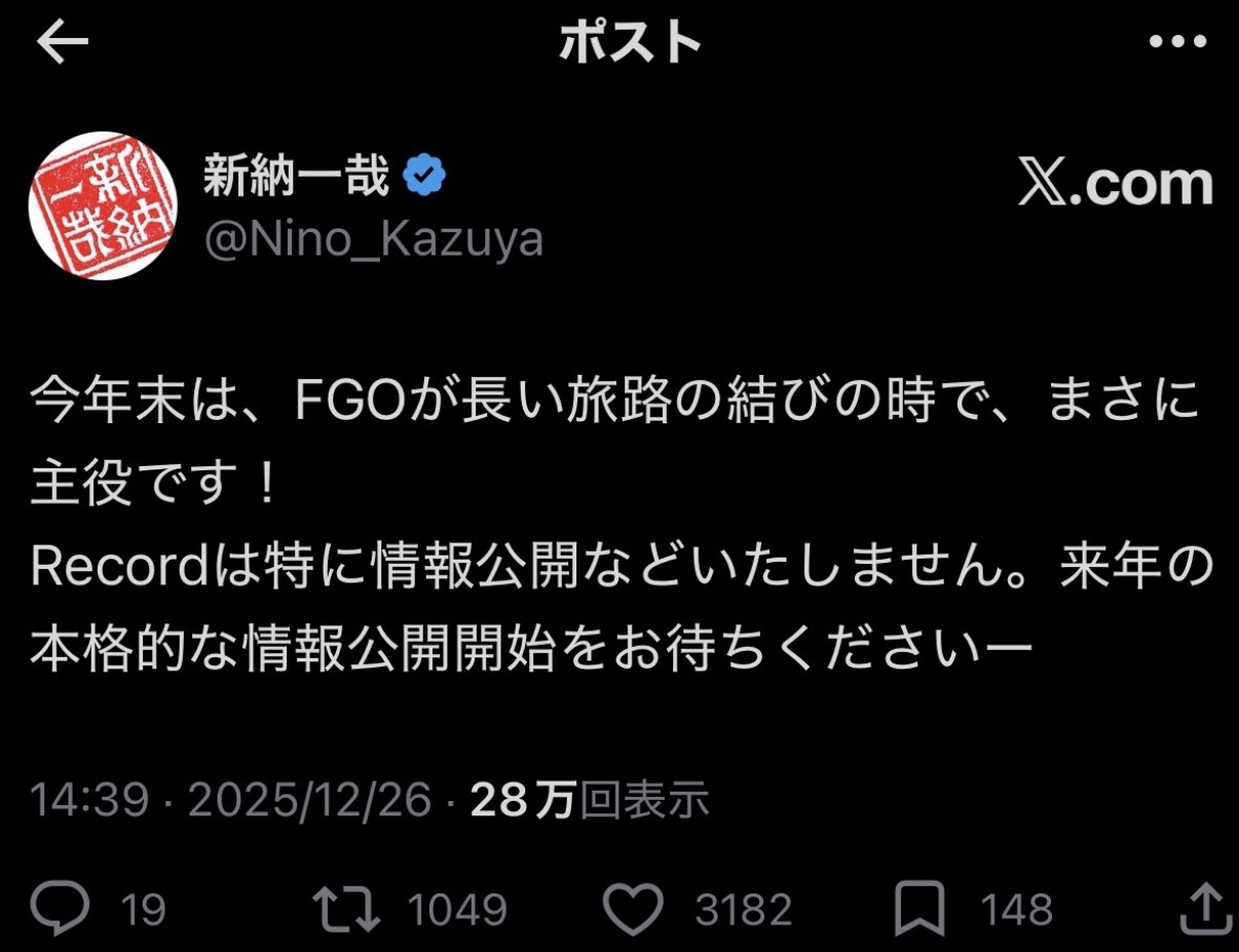 | … | 95026/03/17(火)10:38:21No.1411548867+今年の型月の始まりがFGOでアフタータイムの告知あるまで大晦日放送の内容でボロカス言われてもうここが底だろうと認識してたら今度はリメイクでこれってどうなってんだよ |