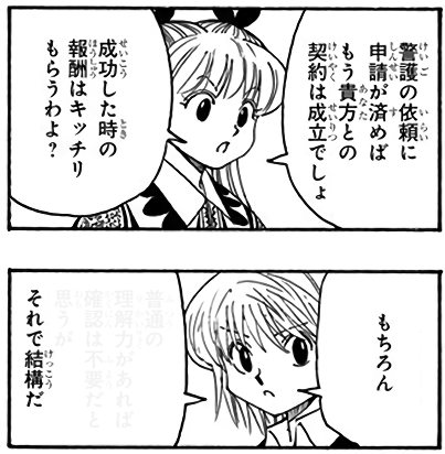 | … | 3526/03/17(火)13:46:49No.1411596786+>勿論それで結構だ(理解が早い女だ…流石はキルアの推薦しただけはある) |