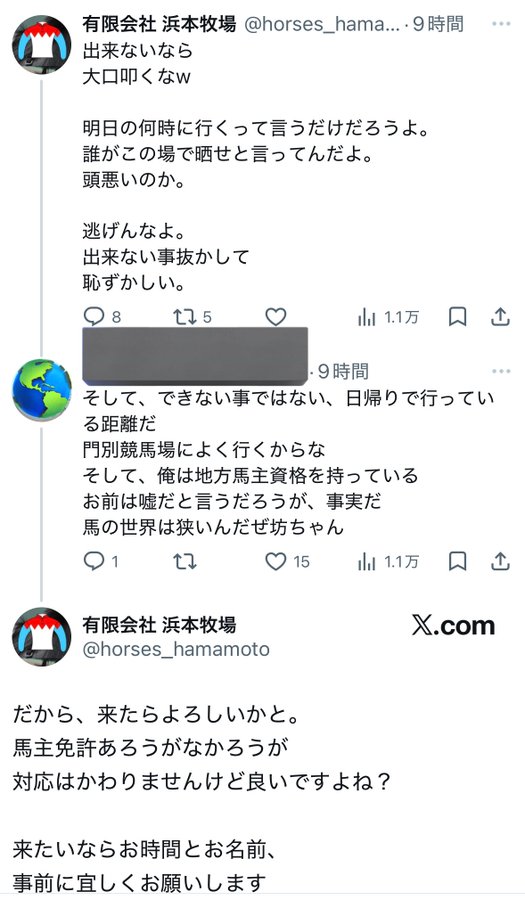 | … | 33326/03/17(火)16:57:52No.1411635986+>多くの関係者がX上で明確に距離を置き、「うちの牧場では絶対にあり得ない」「風評被害が広がる」「業界全体が恥をかいている」と厳しく指摘。 |