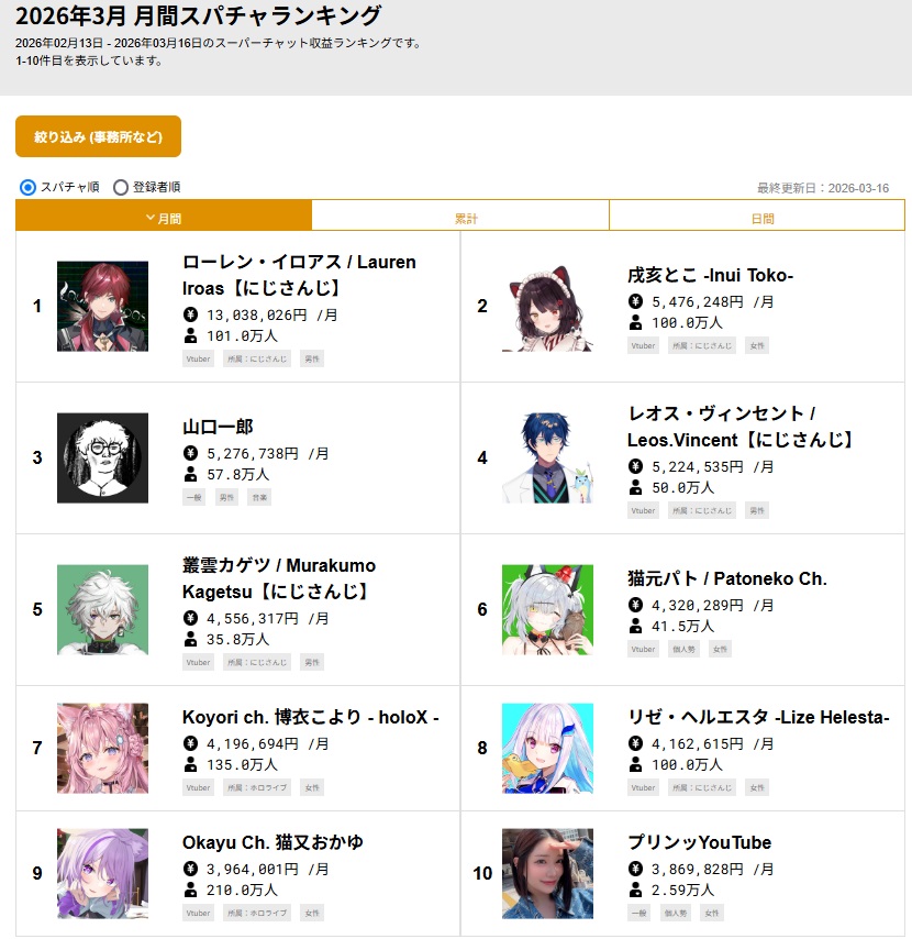 | … | 626/03/17(火)16:08:45No.1411625883+大手なんてスパチャしてもスルーされるんだから |