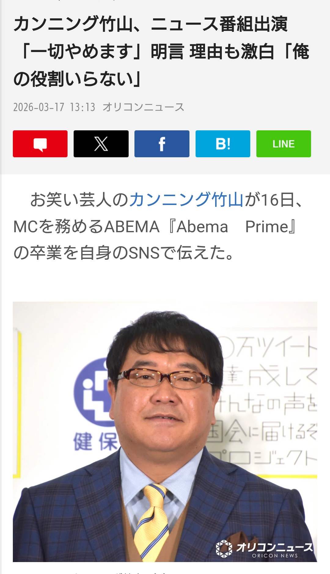 | … | 26026/03/17(火)18:00:55No.1411650813+>竹山:いずれ芸人なんかよ、全員天気予報聞くだけの男になるんだ! |