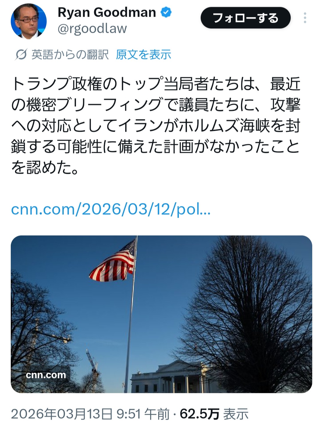 | … | 98226/03/17(火)18:30:51No.1411659130+そもそもトランプの想定ではイラン首脳部殺したらクーデターが起きて親米国家になるはずだったのでイラン国民が悪い |