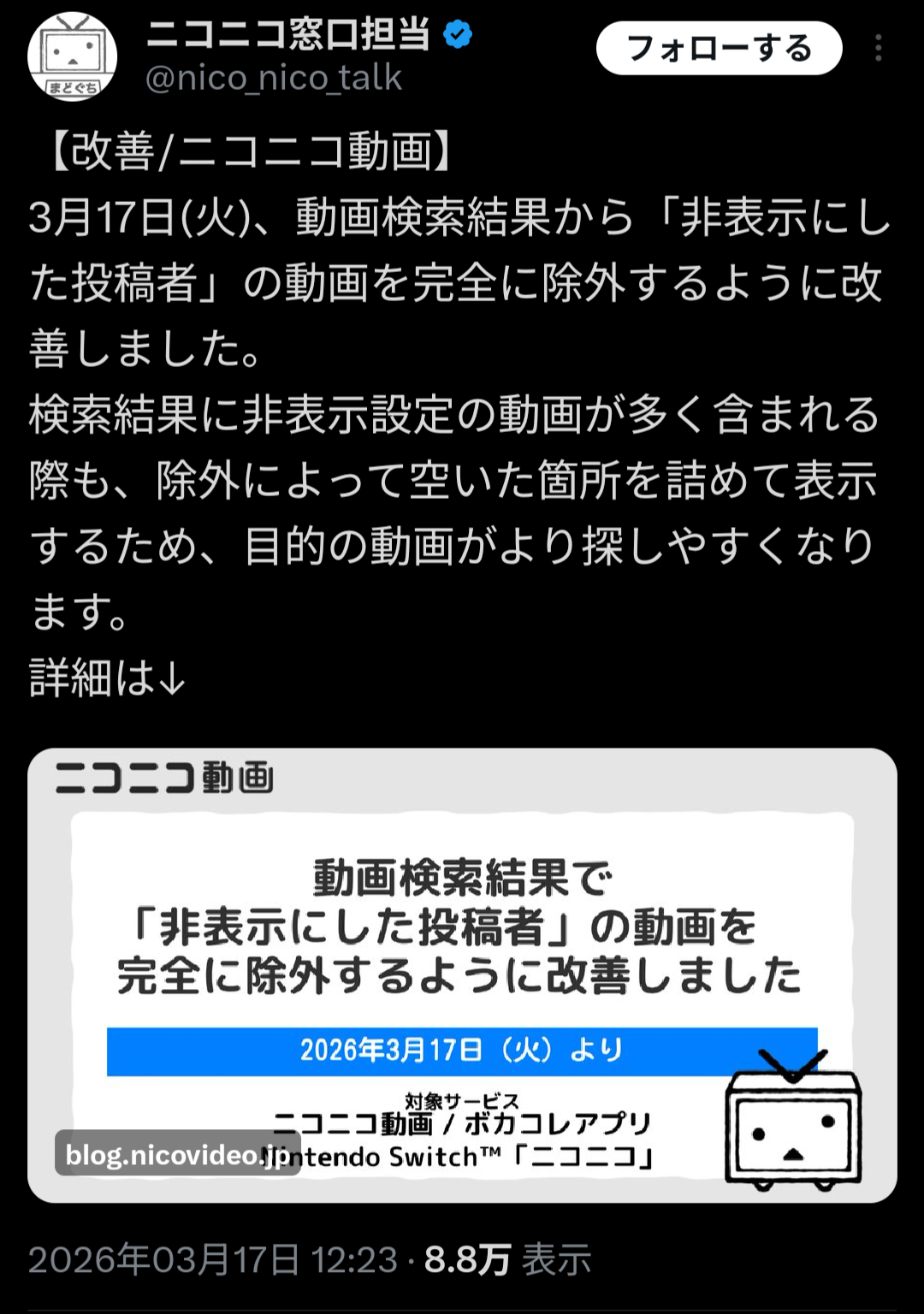 | … | 6026/03/17(火)18:23:27No.1411656999そうだねx2>ニコニコ動画は検索性素晴らしすぎる |