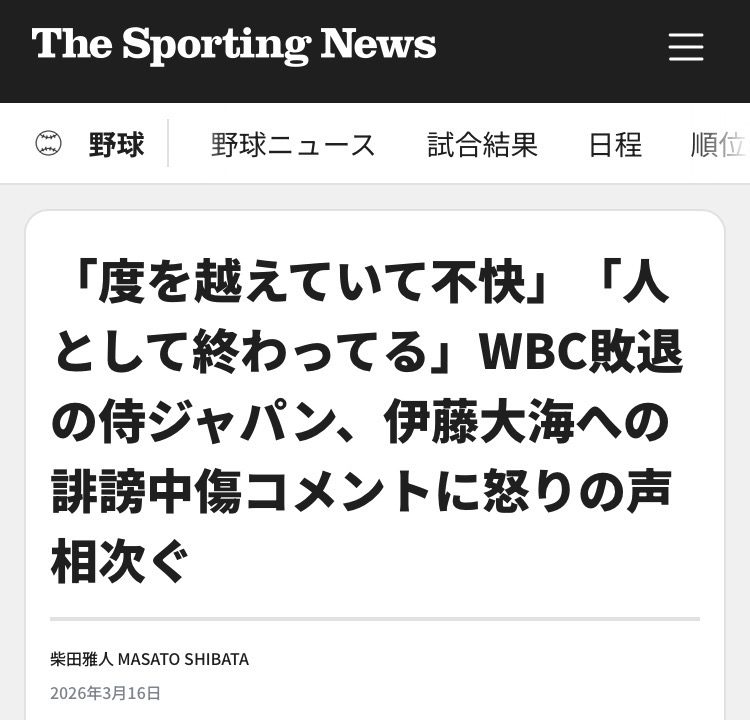 https://www.sportingnews.com/jp/baseball/news/baseball-fans-are-outraged-defamatory-comments-directed-hiromi-ito-who-pitched-wbc/4148c212383a571c687b7072