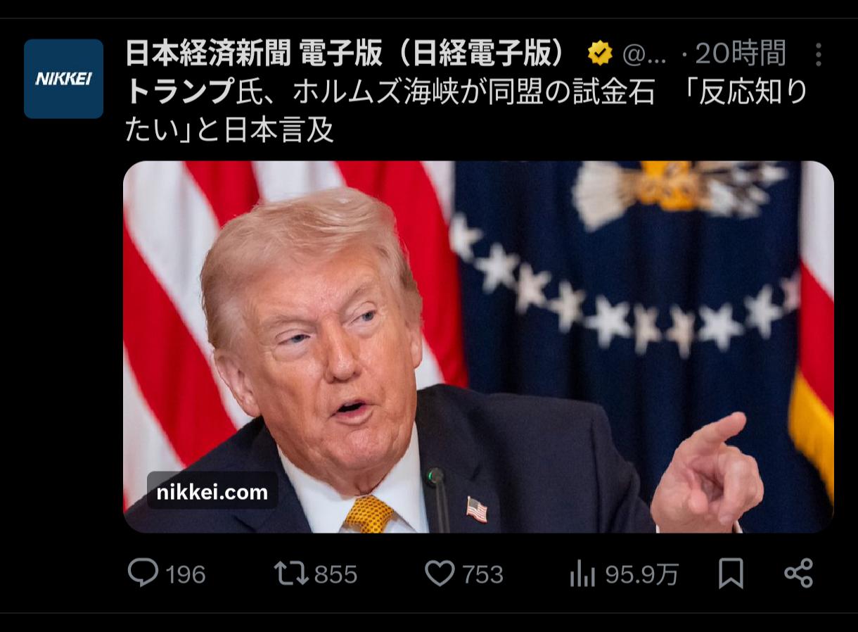 | … | 8426/03/18(水)07:07:41No.1411809415そうだねx3正直ちゃんと訪米する時ノーって言えよ高市… |