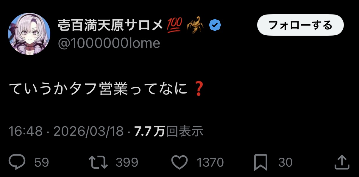 | … | 1926/03/18(水)16:01:36No.1411914040そうだねx53>タフ営業 |
