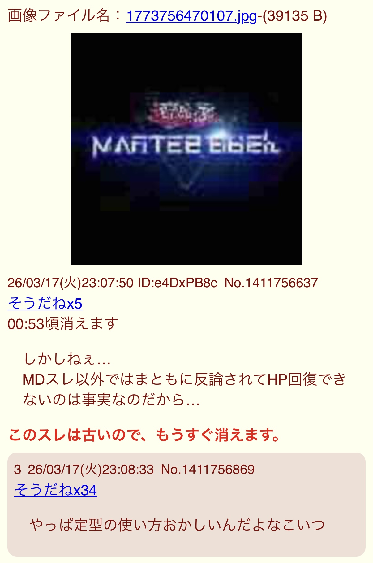 | … | 1126/03/18(水)15:56:19No.1411913064そうだねx4削除依頼によって隔離されました |