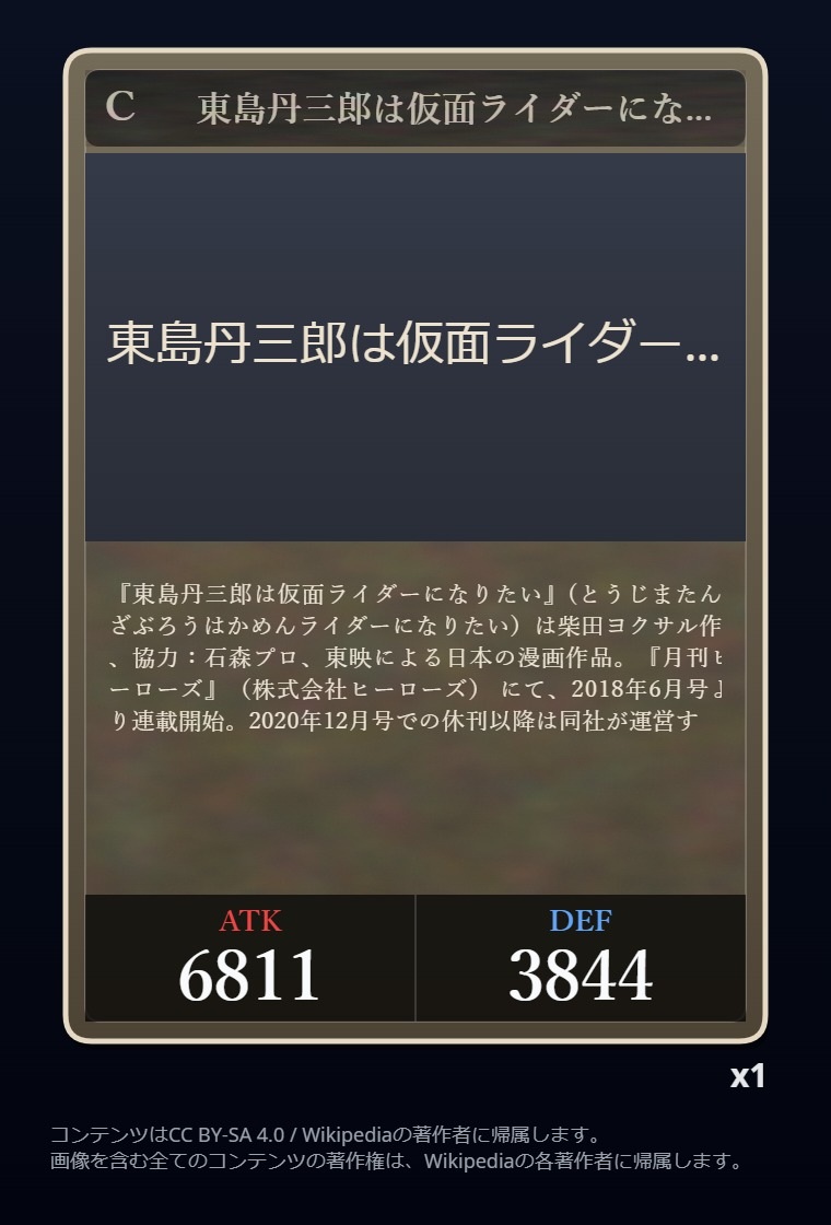 | … | 2926/03/18(水)21:26:27No.1412008234+Wikipediaガチャ結果: |